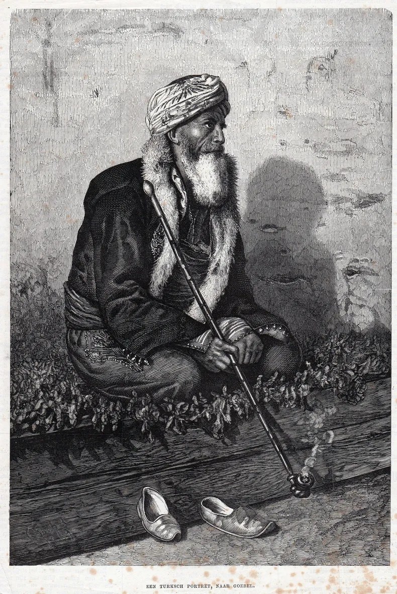 Tobacco, a plant native to the Americas, was introduced to the Islamic world via Europeans at the end of the 16th century. The first reliable references to its use in the Ottoman Empire date to around 1580–1600 (De Vincenz, 2016, p. 118). European travelers described scenes of men smoking long pipes in the streets of Istanbul, and Ottoman archives soon confirmed the rapid spread of the practice (Petchevi, 1866, p. 365). By the early 17th century, smoking had become a common activity in public spaces—coffeehouses, markets, caravanserais—as well as in domestic settings. Initially imported, particularly from Persia and Egypt, tobacco was gradually cultivated in the Balkans and Anatolia (Description de l’Égypte, Vol. III, Modern State, p. 417). A range of tobacco qualities emerged, from fine blends for the elite to coarser types consumed by the lower classes.