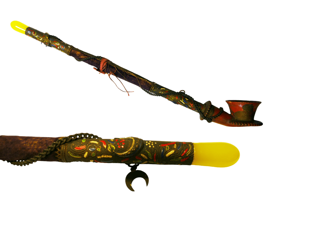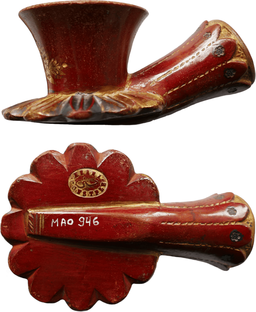The rise of tobacco consumption gave birth to a new everyday object: the pipe (lüle in Ottoman Turkish), composed of two main elements: the bowl (typically terracotta, but sometimes metal or stone) and the stem (wood, reed, or luxurious amber). Ottoman pipes came in a wide range of shapes, sizes, and decorations. Some were plain, others richly adorned with floral, geometric, or figurative motifs. Red ceramic pipes produced in Istanbul—particularly in Tophane—became especially renowned.