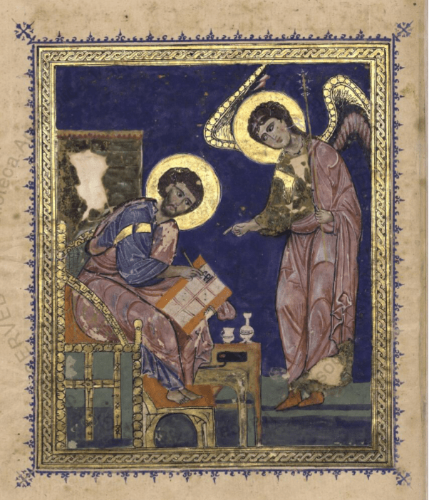 Another feature of this manuscript is its beautiful illuminations at the beginning of each Gospel, such as the ornate opening of the Gospel of Luke.